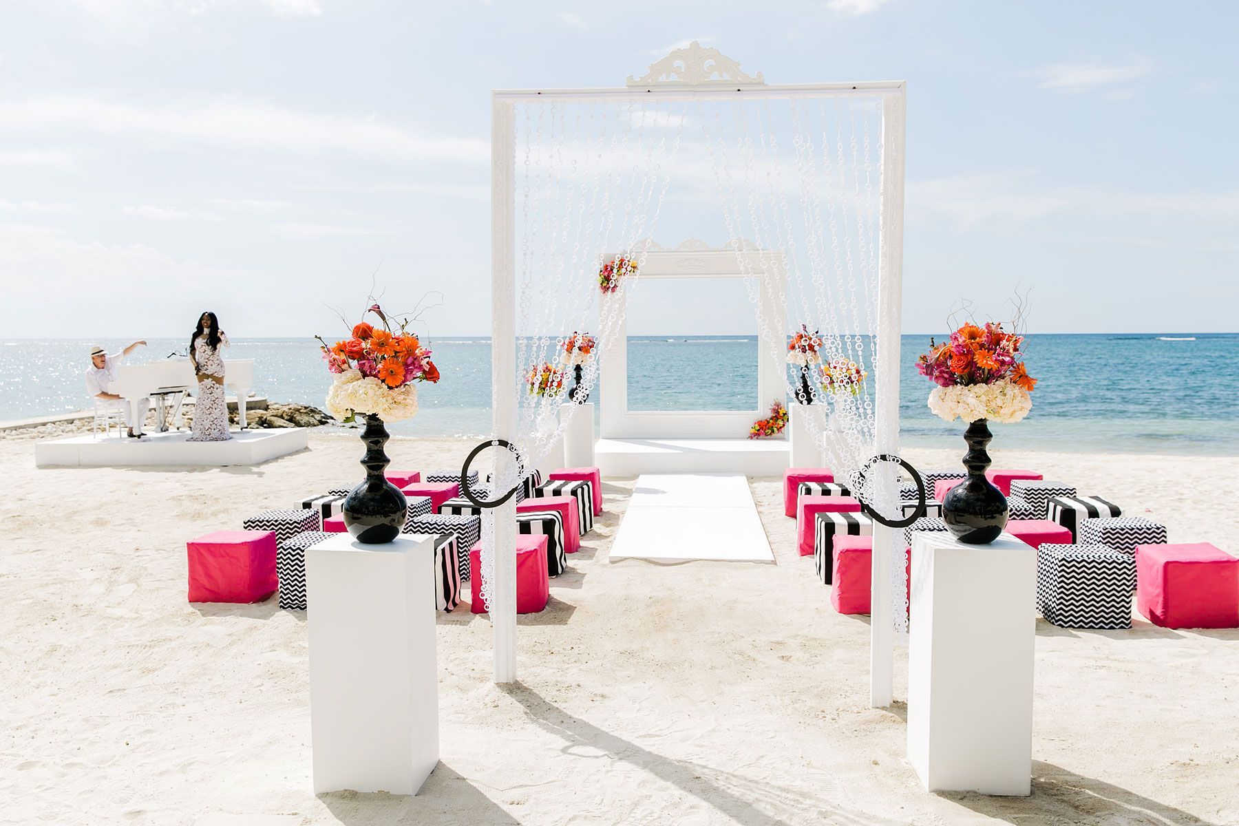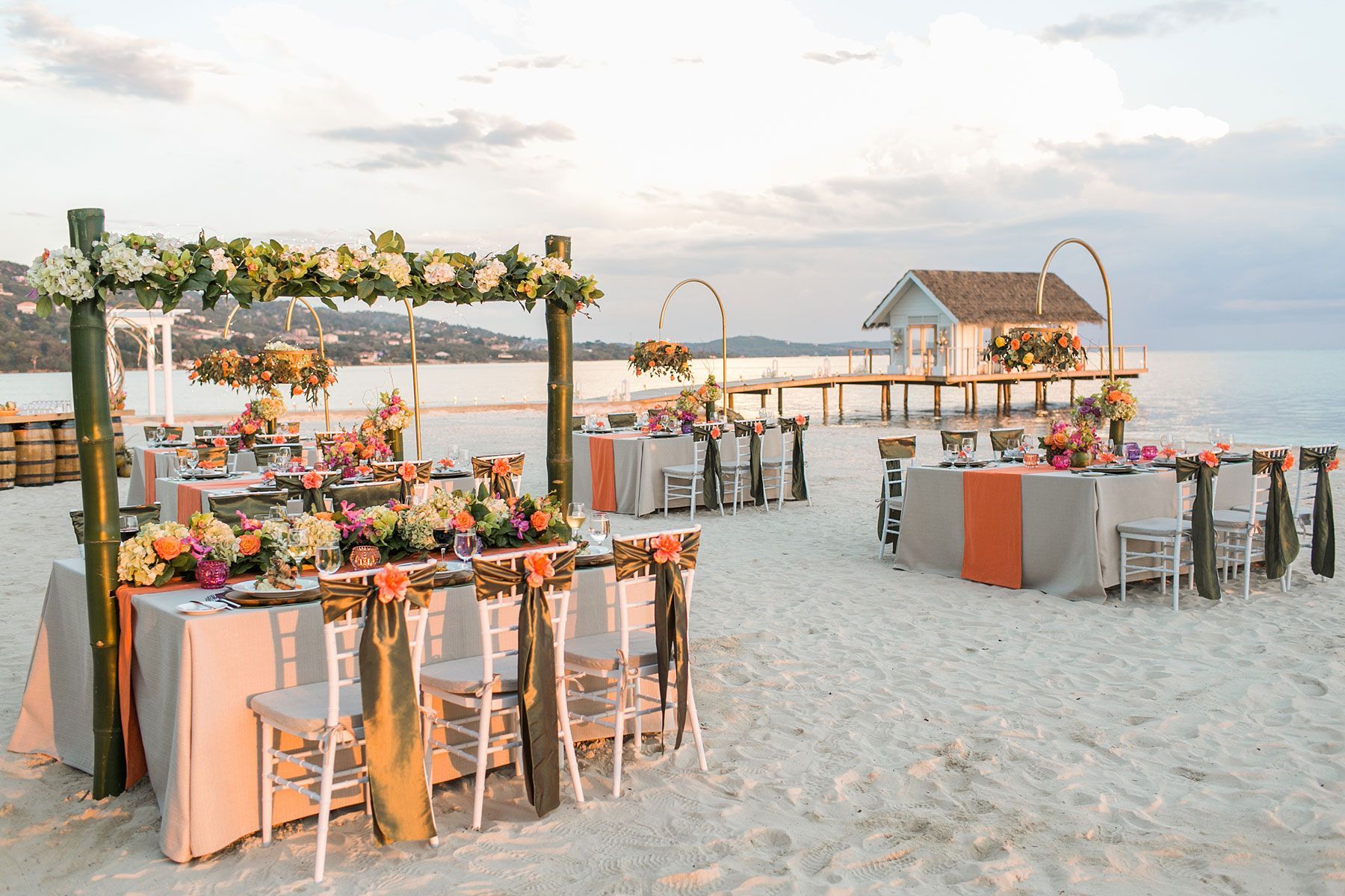 Floral installations, lounge vignettes, ceremony backdrops, and custom decor for resort settings, private estates, and event venues.